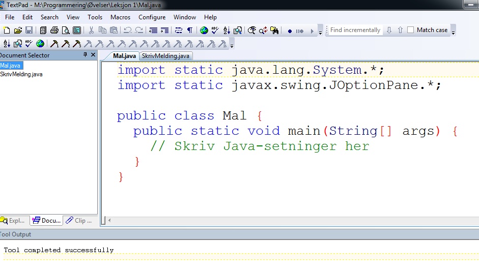Hurra! Min første Java-programmering følger her. Det ble rett (til slutt).