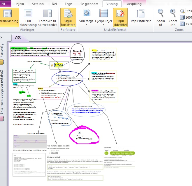 Leser nå en bok om hvordan lage et godt nettsted. Da er det helt digg å bruke Microsoft OneNote å skrive notater i. Her kan man plotte inn tekst akkurat der man vil på siden i ulike fonter, størrelser og med understrekninger og egen håndskrift som man vil. Ja det ser litt «sprøtt ut» men slik skal det være når man gjør egne notater. Er hyggeligere å lese da. Det utrolige med OneNote er også at man kan legge inn filer, linker til nettsider, lese inn egne lydfiler og videosnuttfiler direkte på «arket». Fantastisk verktøy til å gjøre alt slags arbeid. One Note må bare prøves.